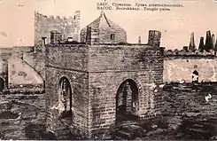 The Englishman Ussher visited Ateshgah on September 19, 1863. He calls it "Atash Jah" and said that there are pilgrims from India and Persia.[40] German Baron Max Thielmann visited the temple in October 1872 and in his memoirs he wrote that Parsi community of Bombay sent here a priest who after a few years will be replaced. His presence is necessary, because here come the pilgrims from the outskirts of Persia (Yazd, Kerman) and from India and remain in this sacred place for several months or years.[41]