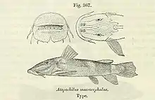 - ↑ Froese, Rainer; Pauly, Daniel (eds.) (2011). "Atopochilus macrocephalus" in FishBase. December 2011 version.