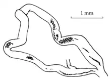 Drawing of the reproductive system: detail of the penial lumen after a transparent specimen.