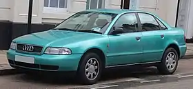 The first generation Audi A4 (known internally as the Typ 8D) debuted in October 1994,[4][5] with production starting November 1994 and European sales commencing in January 1995 for the 1995 model year. North American sales later began in September 1995 for the 1996 model year.[6] It was built on the Volkswagen Group B5 (PL45) platform, which it shared with the fourth generation Volkswagen Passat (B5, Typ 3B). It had a front-mounted longitudinal engine and front-wheel drive. Many variations of the A4 were also available with Audi's quattro four-wheel drive system. The A4 was initially introduced as a four-door saloon/sedan; the Avant (estate/wagon) was introduced in November 1995 and went on sale in February 1996.