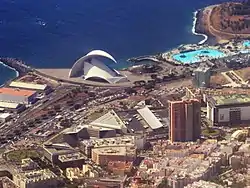 The Auditorio de Tenerife "Adán Martín"[1][2][3] (commonly referred to as the Auditorio de Tenerife) is an auditorium in Santa Cruz de Tenerife, Canary Islands, Spain. Designed by architect Santiago Calatrava, it is located on the Avenue of the Constitution in the Canarian capital, and next to the Atlantic Ocean in the southern part of Port of Santa Cruz de Tenerife. Construction began in 1997 and was completed in 2003. The auditorium was inaugurated on 26 September of that year in the presence of Felipe, Prince of Asturias, and was later visited by former U.S. President Bill Clinton. The building is framed within the tenets of late-modern architecture of the late 20th century.