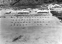 In January 1942, the Defense Plant Corporation, a corporation entity of the Federal government, bought the school from Harold Darr. With the United States now in the war, the size of the classes increased, requiring an expansion of the school's facilities. Construction began on a ground training building in May and an additional barracks in June. The number of aircraft assigned to the school grew from 24 to around 100 BT-13s and BT-15s. Additional paved runways were eventually added.
