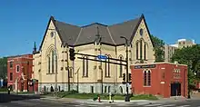 Augustana Lutheran Church is a church in the Elliot Park neighborhood of Minneapolis, built in the Gothic Revival style. Architect William H. Dennis built the church in 1883.[1] The church building,[2] located 704 11th Ave. S., was home to many Scandinavian parishioners in the early decades of existence. The church initially served a large immigrant population in the city of Minneapolis, and the congregation often heard from pastors who traveled from Sweden and Norway.[3] As the downtown population changed, the church congregants also shifted. By the 1960s, many Lutherans attended newer churches in suburban Twin Cities neighborhoods.[4] By 2014, the church had fewer than 100 members, who sold the building.[5]