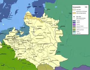 - ↑ Jasienica, Paweł (2007). Rzeczpospolita Obojga Narodów. Dzieje Agonii. Prószynski. pp. 25–27. ISBN 978-83-7469-583-1.