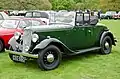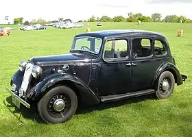The chassis was very conventional, with semi-elliptic leaf springs on all wheels and rigid axles front and rear. Wire wheels were fitted until 1937 when they were replaced with pressed steel ones. At launch there was a choice of a pressed steel six-light (three windows on each side) saloon called the Harley and a two-seat tourer. A second saloon style with a boot, the Ascot, was added in 1934 and the Harley was dropped in 1935. In the same year the chromium-plated radiator shell was replaced by one painted in body colour. The very early cars had their side lights mounted on the scuttle, but these soon moved to the tops of the wings.