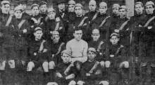 Three matches with the Young Australian League were set for September at the Presidio of San Francisco[91] Cullen-Ward was appointed head coach of the national team.[92] The Australian team arrived on the Matai. They were received with much fanfare with a full page photo of the Australian team featuring in the papers,[93] along with the local boys captained by Henry Behre.[94] The Australian team guernsey was a variation of the West Australian Black Swan emblem acknowledging the West Australian contribution to the tour but featuring a map of Australia to also acknowledge the national nature of the side, while the American team wore the colors and monogram of the Columbia Park Athletic Club. The match was won 95 to 44 at Lincoln Park in front of a crowd of 5,000 including most of the school children in the city and photos of gameplay were featured in The San Francisco Call.[95] In the second match, the Americans took it up to the Australians with the match decided by just 8 points Australia 9.16 (70) to San Francisco 8.14 (62).[96] The match also stimulated interest in the Australian expatriate community, and a third match was played between a combined residents side and the visitors which the visitors won convincingly 125 to 30.[97] The showcase attracted the attention of The New York Times which featured it in an article "Australian Game of Football is the Best".[98]