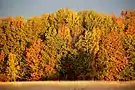 From southern Connecticut southward into northern New Jersey and points south, the number of sugar maple trees declines rapidly as the climate changes to a more temperate zone and oaks become more dominant, thus there are less bright colors.[4][6]