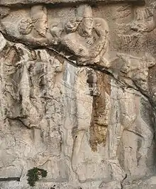 Sasanian-era rock relief in Bishapur depicting cavalrymen, who were generally drawn from the ranks of the azadan and wuzurgan