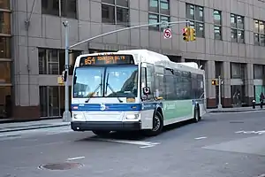 Beginning in the 1920s, many streetcar lines in Queens, Brooklyn, and the rest of the city began to be replaced by buses, particularly after the unification of the city's three primary transit companies (including the BMT) under municipal operations in June 1940.[19] On June 30, 1949, the New York City Board of Estimate approved the full motorization of the Myrtle Avenue and Court Street Line with buses.[20] The line was officially replaced by city-owned buses on July 17, 1949, and the route was split in two. Service along Myrtle Avenue was designated B54 ("B" being the designation for buses based in Brooklyn), and the line along Court Street was designated the B66. The eastern terminal of the B54 was moved to Myrtle Avenue and Palmetto Street, and it western terminal was changed to Myrtle Avenue and Washington Avenue.[16] Service on the B54 was initially provided with ten buses, while B66 service was provided with eight buses.[21] On September 17, 1954, the New York City Transit Authority (NYCTA) approved a plan to cut Brooklyn bus service by 10%, including the elimination of B54 service between 7 p.m. and 5 a.m. to cut costs.[22] Free transfers would have been provided between the B53 and B57 to make up for the loss of evening and overnight B54 service.[23][24][25] On January 20, 1955, the NYCTA approved a resolution to defer the planned service cuts until after July 1, 1955 pending additional ridership checks.[26]