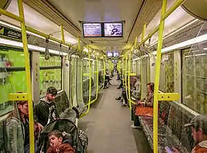 Unlike other wide profile trains, the H class trains only feature longitudinal seats, a feature usually found in small profile trains. It was also the first model introduced in Berlin to feature open gangways, allowing for free movement through the whole length of the train. The interior colours are mainly white and yellow.