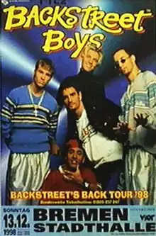 The Backstreet's Back Tour was a concert tour by the Backstreet Boys that began in 1997 and concluded in 1998.[1] It was also the first tour to be held all over the United States. The set list included songs from their second album Backstreet's Back (International) (1997) and several songs from their debut U.S. album, Backstreet Boys (U.S.) (1997).
