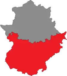 | Major settlements | Badajoz, Mérida, Don Benito, Almendralejo |
