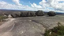 This regolith has created a landscape with many exposed inselbergs of granite rocks, some balancing on top of each other, or forming natural arches.