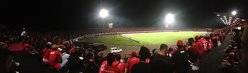 Kapten I Wayan Dipta Stadium in Gianyar, is on a 20-year lease from government of Gianyar Regency.[30] It has been Bali United's home base since the club was formed.[31] Before moving to the stadium, Bali United spent in excess of IDR 5 billion to renovate it to meet the standard of Indonesia Super League. They added a new lighting system, upgraded the dressing rooms, repainted some parts of the stadium, repaired the toilets and upgraded other facilities.[32] The inaugural match for Bali United at their new stadium was a 0–1 defeat over Persib in a friendly match on 3 March 2015.[33] Bali United has continued to upgrade the facility, including adding a store, cafe, and playland around the stadium.[34][35] They also did some renovations for the Asian competition in 2018 to meet the standard of the AFC.[36]