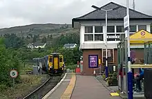 On weekdays and Saturdays, four trains a day call here in either direction. Travelling eastbound, three of them are through trains to Glasgow Queen Street, whilst the other terminates at Fort William and connects with the Caledonian Sleeper service to London Euston.[9][10]