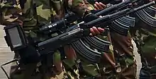 - Type 56 assault rifle - Assembled locally.[10] It is a Chinese variant of the Soviet-designed AK-47 (specifically Type 3) and AKM rifles.[11] It is used by Bangladesh Armed Forces, Border Guard Bangladesh and other forces in a large quantity.