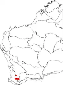 Only a few small populations of B. acanthopoda exist. Until 1999, it was thought to occur only in the Avon Wheatbelt biogeographic region, in the vicinity of Woodanilling and Katanning;[2][3] since then, a population has been found in the Jarrah Forest region, south of Darkan.[4]