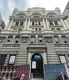 From 1913 onwards, the Banque de Salonique's seat in Istanbul was located in the Generali Han building built in 1909 by Assicurazioni Generali on a design by architect Giulio Mongeri.[17] That building lies immediately to the east of the Imperial Ottoman Bank's headquarters in downhill Galata, now the Karaköy neighborhood.[18] The bank only rented part of the building from Generali, including the street level on Bankalar Caddesi.[19] It was kept by the bank until the 1990s, when it became Generali's Turkish headquarters. Generali in turn sold it in 2011 to businessman İsmet Koçak for redevelopment as a hotel.[20][21]
