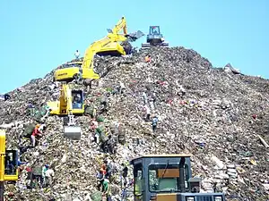 Bantar Gebang is administratively a kelurahan or village in Bekasi city, Indonesia, but it usually refers to the massive trash dump in the area. Between 6,000 and 20,000 people are estimated to live on the site.[1]
