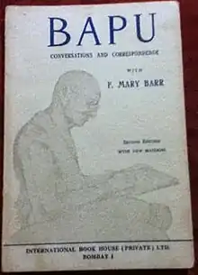 Bapu: Conversations and Correspondence with Mahatma Gandhi is an autobiographical description of F. Mary Barr's relationship and interactions with Mahatma Gandhi, whom she refers to as Bapu (father). Several of Gandhi's letters to the author, originally an English missionary in India, are included in full. The book was originally published in India in 1949. A revised edition was published in India in 1956. The book has been reviewed in several magazines,[1][2][3][4] and discussed in other books.[5][6]