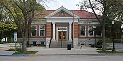 The Baraboo Public Library, also known as the Carnegie-Schadde Memorial Public Library, is the public library serving Baraboo, Wisconsin. Located at 230 4th Avenue, the Carnegie library was built in 1903. It was one of the first small-scale Carnegie libraries in Wisconsin. Architects Claude and Starck of Madison designed the Neoclassical building; the firm designed 39 libraries in the early twentieth century, many of which were funded by Carnegie, and the Baraboo library was one of their first works. The library's design features a projecting entrance portico flanked by Ionic columns and topped with a pediment and a dentillated entablature along the bottom of the tiled hip roof.[2]