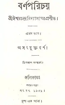 Barnaparichay [note 1] is a Bengali primer written by 19th century Indian social reformer Ishwar Chandra Vidyasagar. It was first published in 1855. This is considered as "The Most Influential Primer of Bengal".[1] The primer had two parts.[note 2] This reflected Vidayasagar's knowledge, expertise and background as a Sanskrit scholar.[2] The success of the first part of the primer inspired Vidyasagar to work on the second part.[3] It remained an important source for teaching Bengali. This standardized the Bengali alphabet.