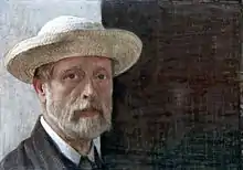 Due to lack of commissions, Menn returned to Geneva, where, in 1844, he applied in vain for a teaching position at the local art school. In the following year, he exhibited a large alpine landscape, "Wetterhorn from Hasliberg", which caused a minor scandal as it did not meet the public's and critics’ expectations of smooth, highly finished, heroic alpine views. This incident did not help much in getting him a public job as professor of painting or drawing. Hence, he started to accept private pupils in his studio. In these years, Menn also experimented together with Jules Darier, another of Corot's friends in Geneva, in producing daguerreotypes, though none of them are known to have been preserved. He also travelled again extensively, this time along the Rhone Valley and to the South of France. It was in these years that he turned completely to the paysage intime (intimate landscape) and achieved similar results to those of Corot, without attaining the latter's impressive level of creativity. In 1850, Menn was appointed director of the Geneva art school and from then on taught figure drawing, rather than landscapes, for 42 years. In this position, he trained two generations of Swiss painters, among them Eugène Burnand, Pierre Pignolat, Edouard Vallet and Ferdinand Hodler, who reputedly said: ‘It is to him [Menn] that I owe everything’.[6]