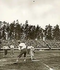 Pesäpallo, a Finnish variation of baseball, was invented by Lauri "Tahko" Pihkala in the 1920s,[95] and after that, it has changed with the times and grown in popularity. Picture of Pesäpallo match in 1958 in Jyväskylä, Finland.