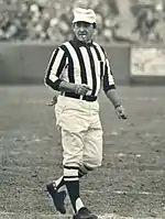 In the early days of the sport, baseball players wore their pant legs low. High socks, and with it, knickerbockers ("knickers"), which were commonly worn by boys in the late 19th century and into the 20th century, were introduced as part of the baseball uniform by the 1869 Cincinnati Red Stockings.[1] They wore red stockings that were displayed prominently with the high pants, true to their name, but it was not until the early 20th century that the stirrup stocking was introduced. In 1905, Nap Lajoie suffered an infected spike wound, attributed to the dye in his socks (fabric color dyes were thought not to be colorfast in those days), that nearly resulted in his leg being amputated.[2] Lajoie's solution to this was to wear white sanitary socks ("sanitaries"), but this posed another problem. The colored sock was difficult to put on with the extra white socks, so another solution came of this: A footless sock with a small arched opening at the bottom, to be called "stirrup" socks, due to their resemblance to stirrup irons used in equestrian events. The less expensive white sock could be changed more frequently. These stirrups were initially meant to mimic the solid-color socks.