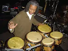 Bashiri Johnson (born May 12, 1955) is a New York City-based percussionist, whose work has appeared on many records, as well as in commercials, films, television, videogames, and concert performances.[1] He is known to be one of the most recorded percussionists in the music business, as well as one of the most visible. While he has recorded with such artists as Luther Vandross, Miles Davis, and Patti LaBelle, he has also been a part of numerous on-stage performances; he has performed on stage with artists such as Sting, Michael Jackson, Whitney Houston, Lionel Richie, Aretha Franklin, and Steve Winwood.[2]