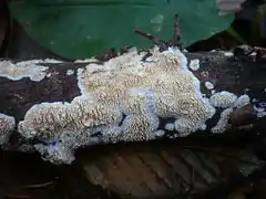2. โ†‘ Nobles MK. (1967). "Conspecifity of Basidioradulum (Radula) radula and Corticium hydnans". Mycologia. 59 (2): 192โ€“211. doi:10.2307/3756793.