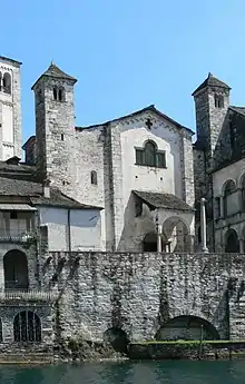 The Basilica di San Giulio is a Roman Catholic church on the small Isola San Giulio in the center of Lake Orta, province of Novara, north-western Italy. It has the status of a minor basilica.[1] Although the island is part of the Orta San Giulio municipality, the basilica belongs to the San Giacomo parish, including the island and a portion of the west coast of the lake in San Maurizio d'Opaglio municipality.
