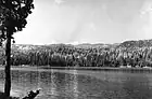 The lake is bound by Malum Ridge on the south and by Graham Mountain[8] which rises dramatically to an elevation of 6,090 feet (1,860 m) in the northeast. Goat Mountain,[9] which frames the lake on the west, is named after the goats that helped compact the soil of the original earthwork dam who grazed there.[10]