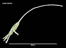 - ↑ Clark, A.H. (1907). "A new stalked crinoid (Ptilocrinus pinnatus) from the Pacific coast with a note on Bathycrinus". Proceedings of the United States National Museum. 32 (1547): 551–554. doi:10.5479/si.00963801.32-1547.551.