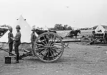A British 15 pounder field gun at a camp near Boshof, 1900