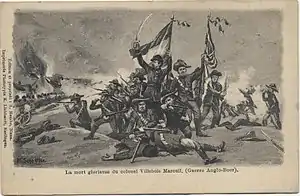 French postcard depicting The glorious death of Comte de Villebois-Mareuil at the Battle of Boshof, 1900