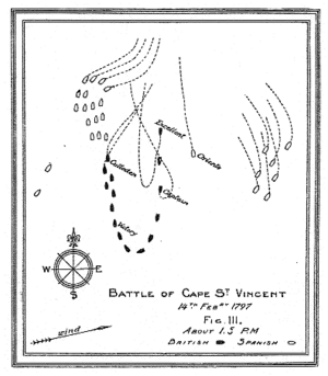 The Battle of Cape St. Vincent (14 February 1797) was one of the opening battles of the Anglo-Spanish War (1796–1808), as part of the French Revolutionary Wars, where a British fleet under Admiral Sir John Jervis defeated a greatly superior Spanish fleet under Admiral Don José de Córdoba y Ramos near Cape St. Vincent, Portugal.