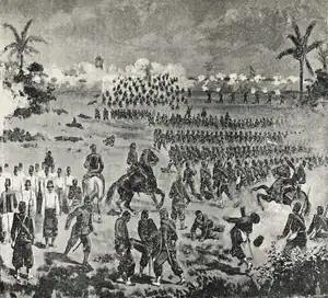 The Battle of Piribebuy was fought on 12 August 1869 in the Paraguayan town of Piribebuy, which was then serving as a temporary capital of the Paraguayan government. The Paraguayan defenders, who were poorly armed and included children, fought the attacks of the Allied forces, led by French-born Brazilian general prince Gaston of Orleans, the Count of Eu, son-in-law of Emperor Pedro II of Brazil. The town refused two peace envoys calling for surrender, sent by the Count of Eu. At 0400, the Brazilian batteries surrounding the town started a bombardment which lasted until 0800, when the infantry charged. General João Manuel Mena Barreto was mortally wounded leading a cavalry charge against the Paraguayans.[1]: 103