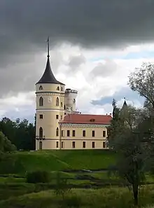 Paul, who detested Catherinian Enlightenment, considered classic architecture a dry, emotionally inadequate reproduction of antiques.[13] Dmitry Shvidkovsky pointed to a 1782 meeting between Paul and French artist and antiquary Charles-Louis Clérisseau at Château de Chantilly as the event that could have shaped Paul's architectural tastes. Clerisseau, who knew he was admired by the empress, reprimanded the Russian heir-apparent for not paying him attention before and promised to report Paul's "disrespect" to Catherine; little else could hurt Paul's feelings more.[13] The bitter exchange sealed Paul's tastes in favor of emerging Romanticism and, at the same time, French Baroque,[14] and sowed the seed for the "Battle of the Palaces".