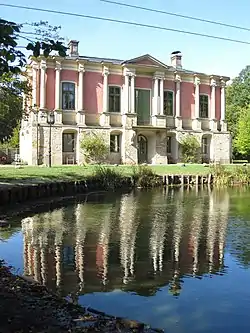Jagdschloss Baum was built between 1760 and 1761 by Count Wilhelm zu Schaumburg Lippe and is considered a prime example of late Baroque Classicism. An English landscape garden with a small pond adjoins the lodge. Just beyond the pond is a grotto flanked by two portals. These early Baroque portals were installed in 1758 and were probably created between 1604 and 1606 for the Bückeburg Palace's first-floor great hall.