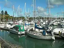 The fully serviced marina at Pine Harbour includes a ferry service to central Auckland with 20 departures per day in each direction on Mondays to Fridays. In 2015, the 570-berth Pine Harbour Marina and some 9 hectares of associated land were sold for $22 million.[21] The marina is a major transport hub for the area.[5]