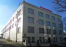 Industrial development started in the early 20th century at the junction of Coombe Road and Lewes Road. Two large factories were built, both of which survive (but not in industrial use). On the north side of Coombe Road, Bernard Oppenheimer's diamond cutting company National Diamond Factories (Bernard Oppenheimer) Ltd built a large works in 1917. Employees included amputee former World War I soldiers. In 1927, it was subdivided into premises for Schweppes[1] and the local electrical engineering company Allen West Ltd, whose works further up Lewes Road had been damaged by a lightning strike.[42] C.V.A. Tools were the next occupants from 1945, but the factory closed in 1973 after a company takeover. In 2000 it was renovated and turned into flats with Art Deco touches. Immediately opposite, on the south side of Coombe Road, another diamond factory was built in 1918. Later, until it closed in 1991, it became the European base of Dentsply, a false teeth manufacturer. Since then it has been occupied by self storage space for the Big Yellow Group. Smaller factories further up Coombe Road belonged to producers of artificial limbs and asbestos, among other products.[1] Allen West expanded further by building a large design and administration office in 1966 on land between Lewes Road and Dewe Road. Contraction in the electrical engineering industry rendered it redundant almost immediately, though: it closed in 1968 and was sold to a property developer in 1972. Five years later it was sold to Brighton Polytechnic (now the University of Brighton) and became Mithras House, one of the institution's main buildings.[42]