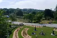 South of Bear Road, about 100 acres (40 ha) of the land formerly belonging to Scabe's Castle Farm is now covered by cemeteries. The Brighton Extra Mural Cemetery is the earliest: it was founded in 1850 by the Brighton Extra Mural Company, which was set up by four eminent Brightonians who were concerned about the lack of burial space in the growing town and the implications for public health. Nonconformist minister John Nelson Goulty, his son the architect Horatio Nelson Goulty, fellow architect Amon Henry Wilds and doctor and politician John Cordy Burrows bought an initial 13 acres (5.3 ha) of land and laid out a private cemetery for Anglican, Roman Catholic and Nonconformist burials.[18] The cemetery now covers 16.5 acres (6.7 ha) and is maintained by Brighton and Hove City Council.[19] In 1857, the Brighton Parochial Cemetery was founded on 20-acre (8.1 ha) of land adjoining the Extra Mural Cemetery; it is now called the Woodvale Cemetery and also has Sussex's first crematorium—the Woodvale Crematorium—which opened in 1930.[20][21][22] A third cemetery opened north of Bear Road and opposite the Extra Mural Cemetery in 1868: it covers 31.5 acres (12.7 ha) and is known as City Cemetery or Bear Road Cemetery.[23][24] In 1886, a fourth cemetery—again privately operated, a status which it still retains—opened on 30 acres (12 ha) of land southeast of the Woodvale Cemetery. It is called the Brighton and Preston Cemetery and also has a crematorium.[23][24] In 1919, the new Meadowview Jewish Cemetery (replacing a 19th-century facility on Ditchling Road in Round Hill) was laid out on land between the Bear Road Cemetery and the Meadowview estate. The 3.5-acre (1.4 ha) site was extended in 1978 when 1.5 acres (0.61 ha) was added to the northeast.[20][25]