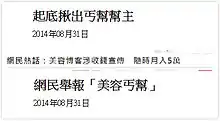 2. 1 2 3 "網民舉報「美容丐幫」" [Internet users reported beauty beggars]. Hong Kong Daily News. 31 August 2014. Archived from the original on 2 April 2015. Retrieved 18 March 2015.