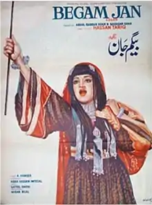Begum Jaan is a Pakistani drama film directed by Hassan Tariq and is the remake of director's own Neend (1959).[1] Rani played the title role of Begum Jaan in the film opposite Shahid while Qavi Khan, Aurangzeb and Rangeela appeared in supporting roles. The music of the film was composed by A. Hameed with lyrics by Qateel Shifai. The film released on 23 June 1977 and was a box office hit.[2][3][4][5] It revolves around a pathan woman who goes door to door to sell clothes, and later gives birth to an illegitimate child. Despite allowing a countrywide theatrical release, it was censored and didn't release in some areas.[6]