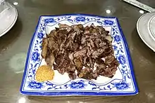 Many dishes in Beijing cuisine that are served as main courses are derived from a variety of Chinese Halal foods, particularly lamb and beef dishes,[5] as well as from Huaiyang cuisine.