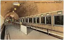 The Belle Isle Aquarium is a public aquarium located in Belle Isle Park in Detroit, Michigan. Designed by noted architects George D. Mason and Albert Kahn,[5] it opened on August 18, 1904, and was the oldest continually operating public aquarium in North America when it closed on April 3, 2005.[2] The aquarium reopened to the public on August 18, 2012, and is now run entirely by Belle Isle Conservancy, a 501(c)3 non-profit partner to Belle Isle park.[6] The 10,000-square-foot (930 m2) historic building features a single large gallery with an arched ceiling covered in green glass tile to evoke an underwater feeling.[1][7]