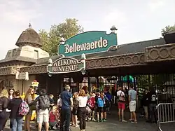 Bellewaerde is a theme park in the West Flemish countryside at Zonnebeke near Ypres, Belgium (it is physically located just inside the Ypres municipality boundary). It was established in 1954, on the grounds of the World War I Battle of Bellewaarde. Named after an old castle in its territory that still stands near the main entrance, Bellewaerde is the oldest operating theme park in Belgium. Originally a zoo and safari, the park expanded in the early eighties to become more of a general theme- and thrillpark, catering towards teens and families. The 54-hectare (130-acre) park is known for its beautiful gardens, marvelous landscaping and its attention to theming. Its mascotte is a lion dressed as a king, King Lion. Bellewaerde draws about 850,000 - 900,000 visitors a year and is the main theme park in Flanders.
