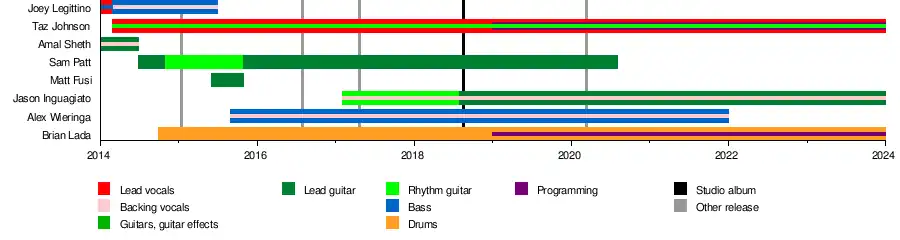 - Jason Inguagiato – lead guitar (2018–present); rhythm guitar (2017–2018)