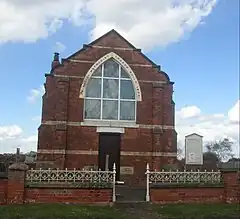 The only public building in the village is the Methodist Chapel. In the 18th century, the Quakers were quite active in the area and had their own burial ground in the village. This site was reused by the Methodists, who built the first chapel there in 1833. That building was demolished, and a new chapel was built in 1904, and the premises were extended in 1923, when a Sunday School was added. The building sits on a wide plot, with a grassed area to the east of it, which was the former burial ground.[2]